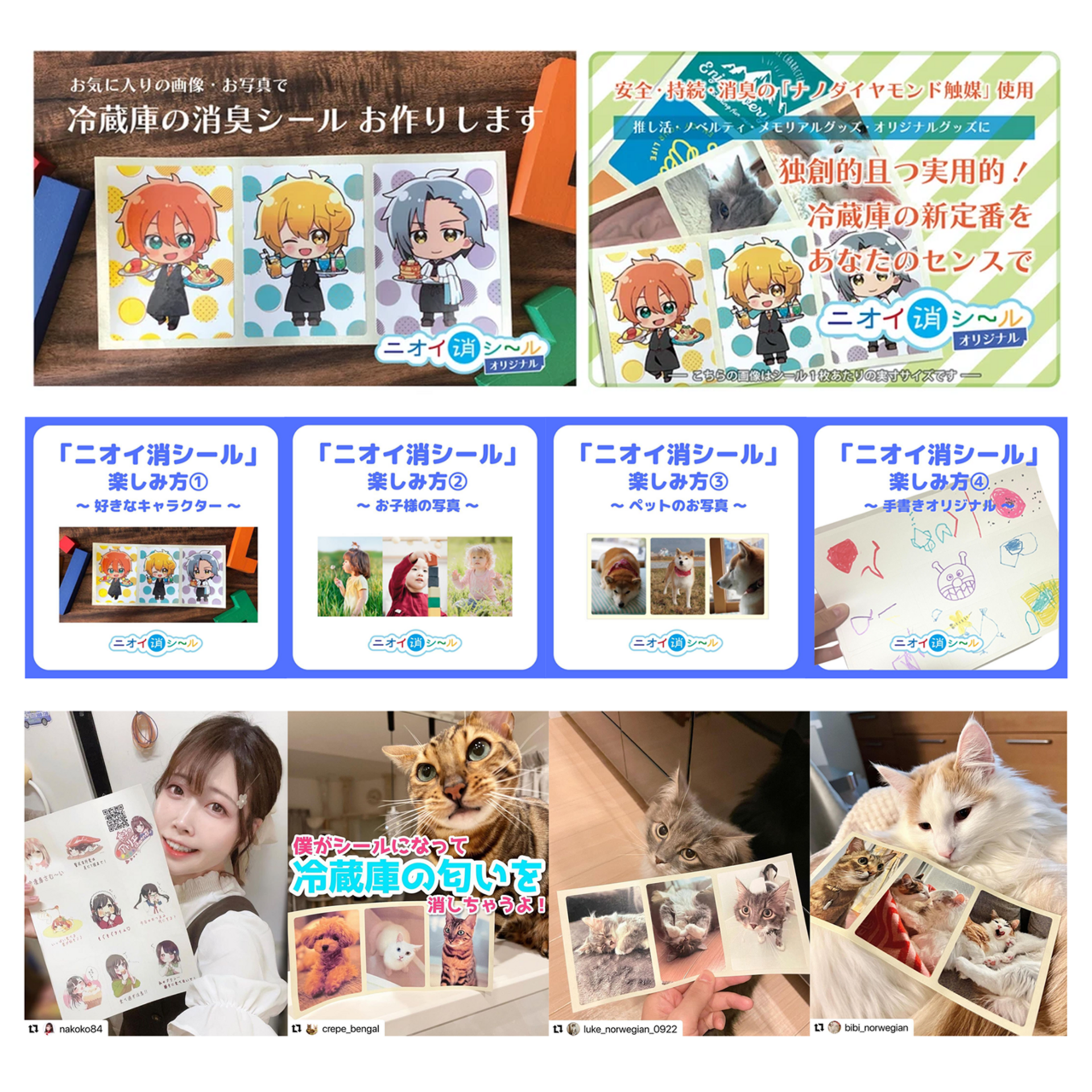 当社は日本初となるナノダイヤモンドを使用した商品・サービスの開発を行っており、その高い消臭効果を生活の中で役立つアイテム開発の末、冷蔵庫の消臭効果が来た出来る「においけしーる」が誕生いたしました。毎日開く冷蔵庫。可愛いシールが目に触れる事で忙しい日々の中で少しほっとしていただけるきっかけとなれば…という想いで様々なラインナップを取り揃えています。